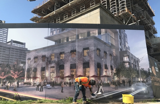 A workman scrubs graffiti off a picture outward a condominium construction site in Toronto in July. New condos do not uncover adult in CREA numbers. (Chris Helgren/Reuters)